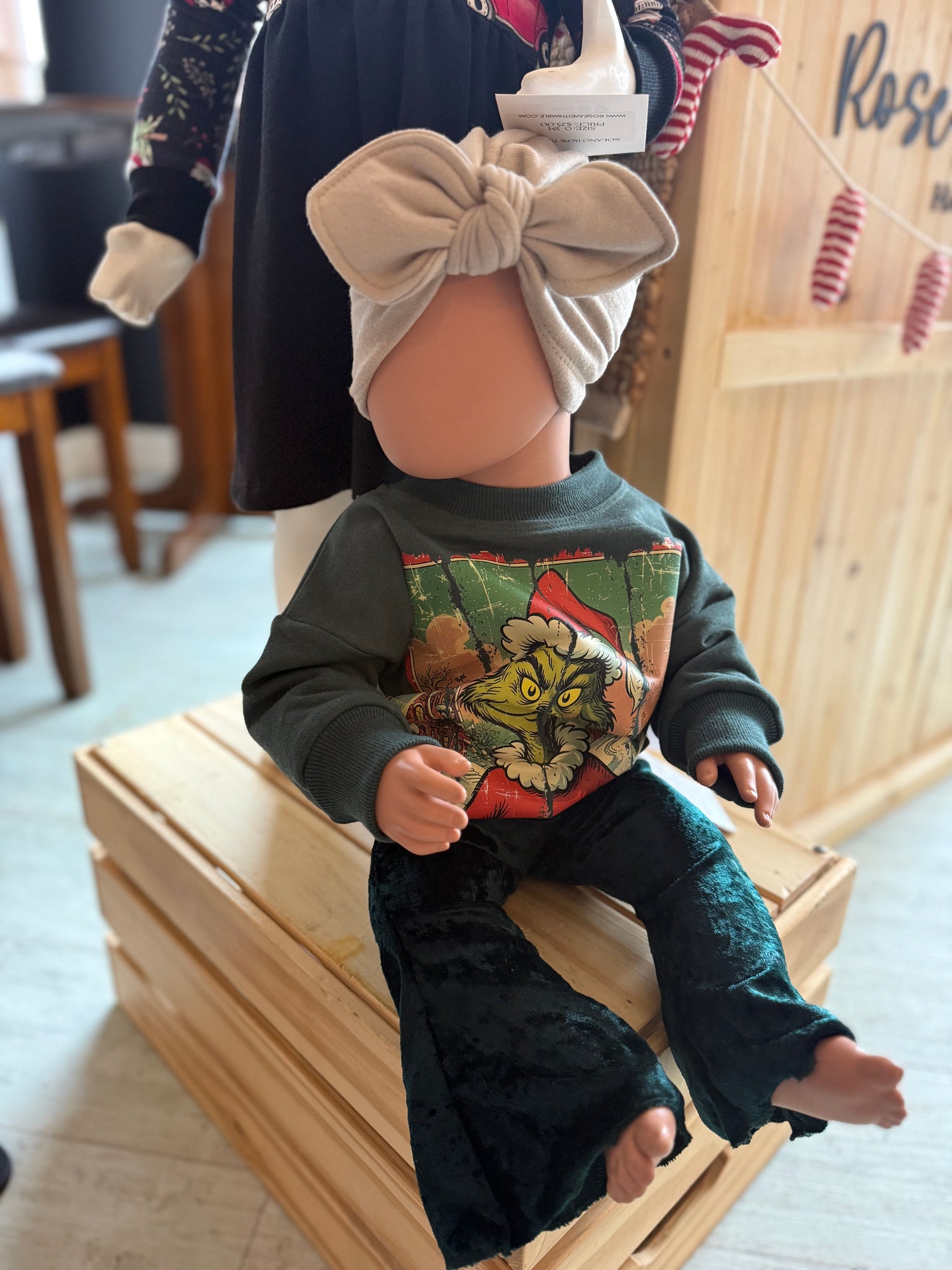 0-6m Slouchy Sweater Romper - Pine  Grinch